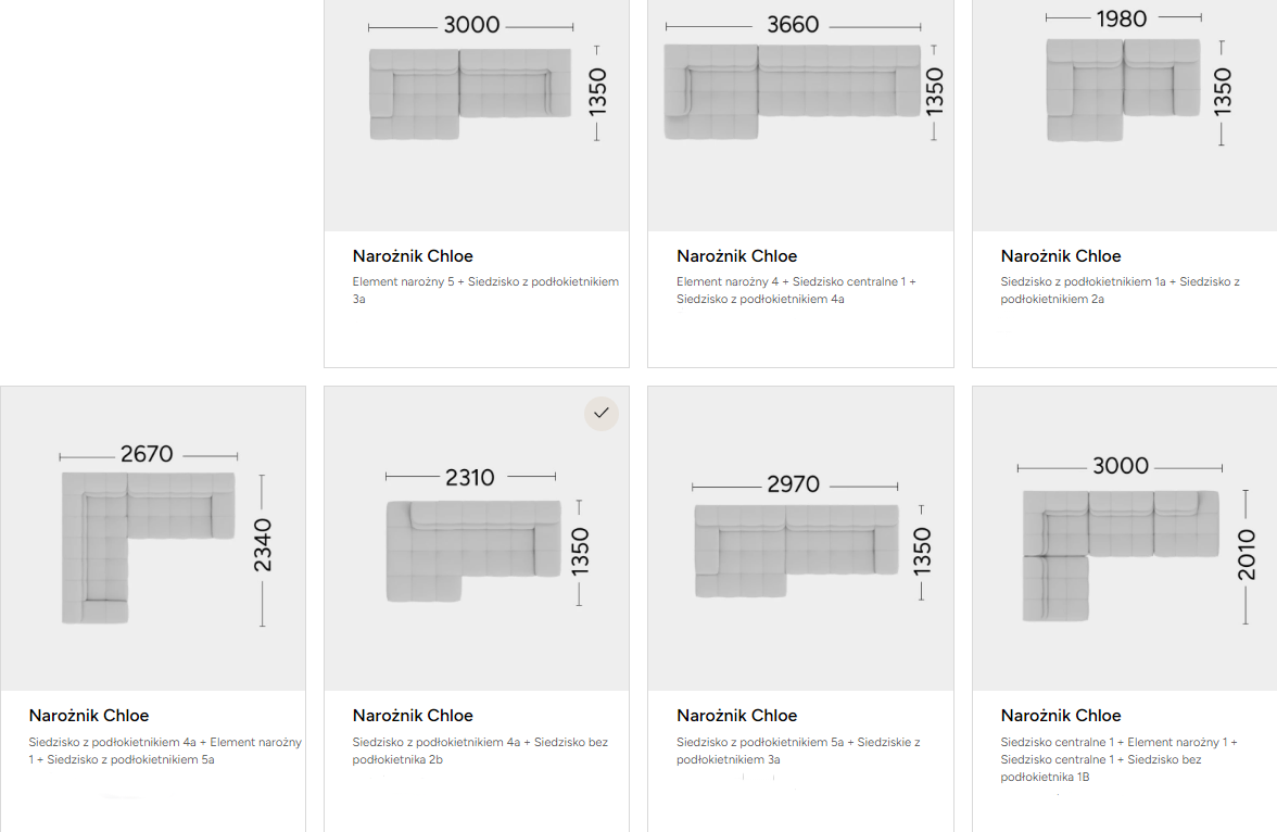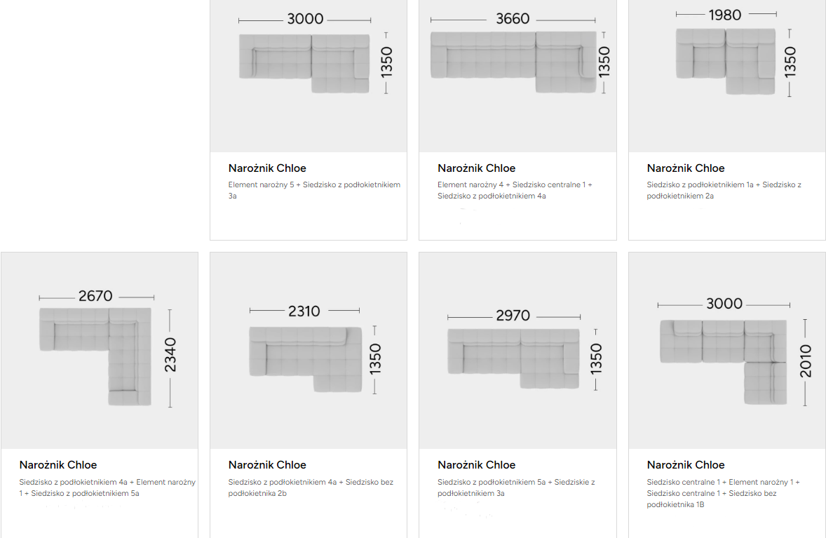 Poniżej przedstawiamy możliwe konfiguracje narożnika