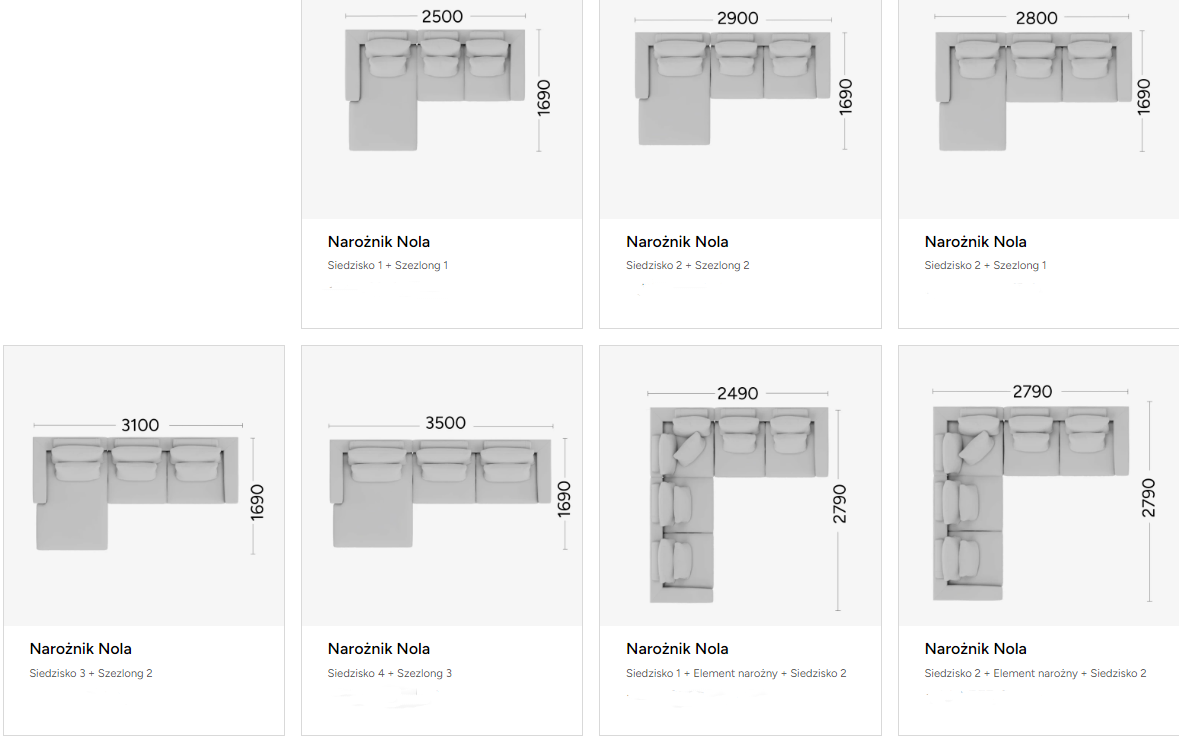 Poniżej przedstawiamy możliwe konfiguracje narożnika: