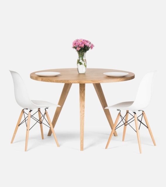 Round oak table in Scandinavian style