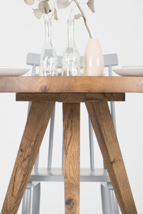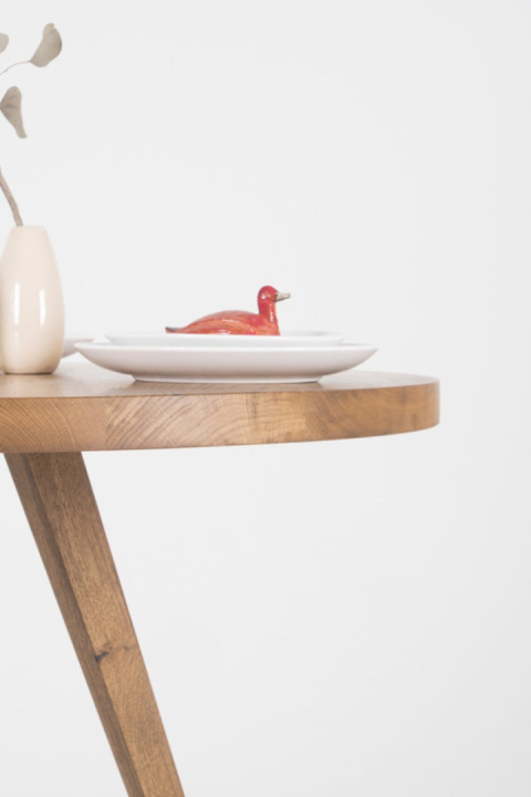 Okrągły rustykalny stół dębowy w stylu skandynawskim