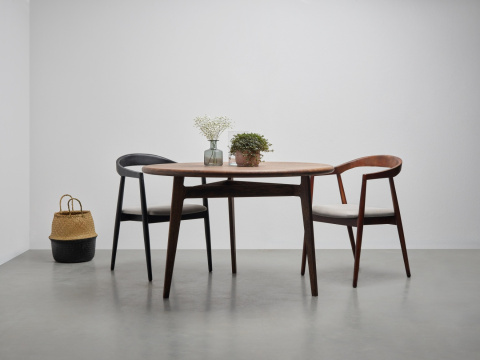 Stół w całości wykonany został z naturalnego drewna dębowego pokrytego olejowoskiem w kolorze ciepłego czekoladowego brązu